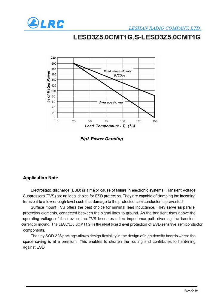 > LESD3Z5.0CMT1G VRM 5V VC 11.6V CJ 25pF SOD-323 LRC通用ESD保護二極管