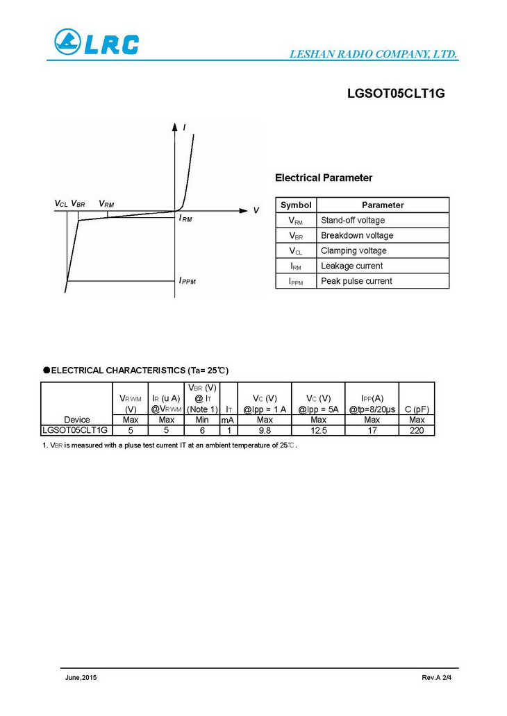 LGSOT05CLT1G VRM 5V VC 9.8V CJ 220pF SOT-23 LRC通用ESD保護二極管