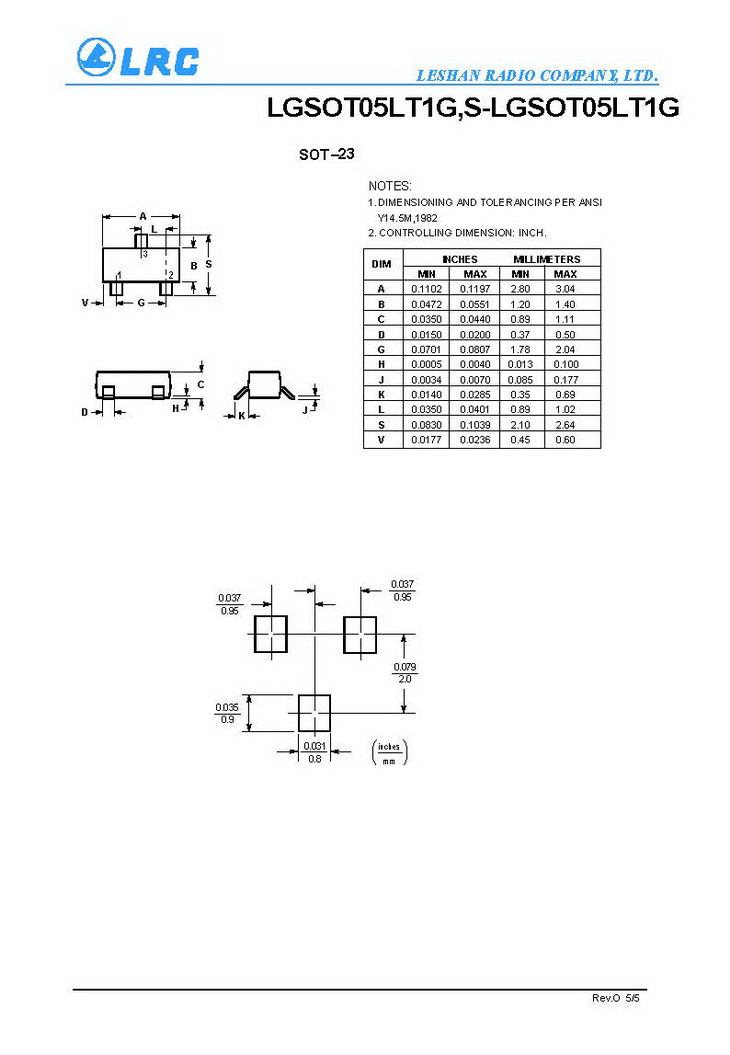 LGSOT05LT1G VRM 5V VC 9.8V CJ 220pF SOT-23 LRC通用ESD保護(hù)二極管