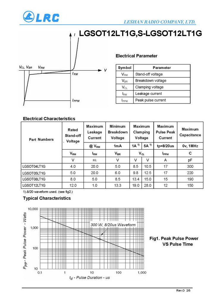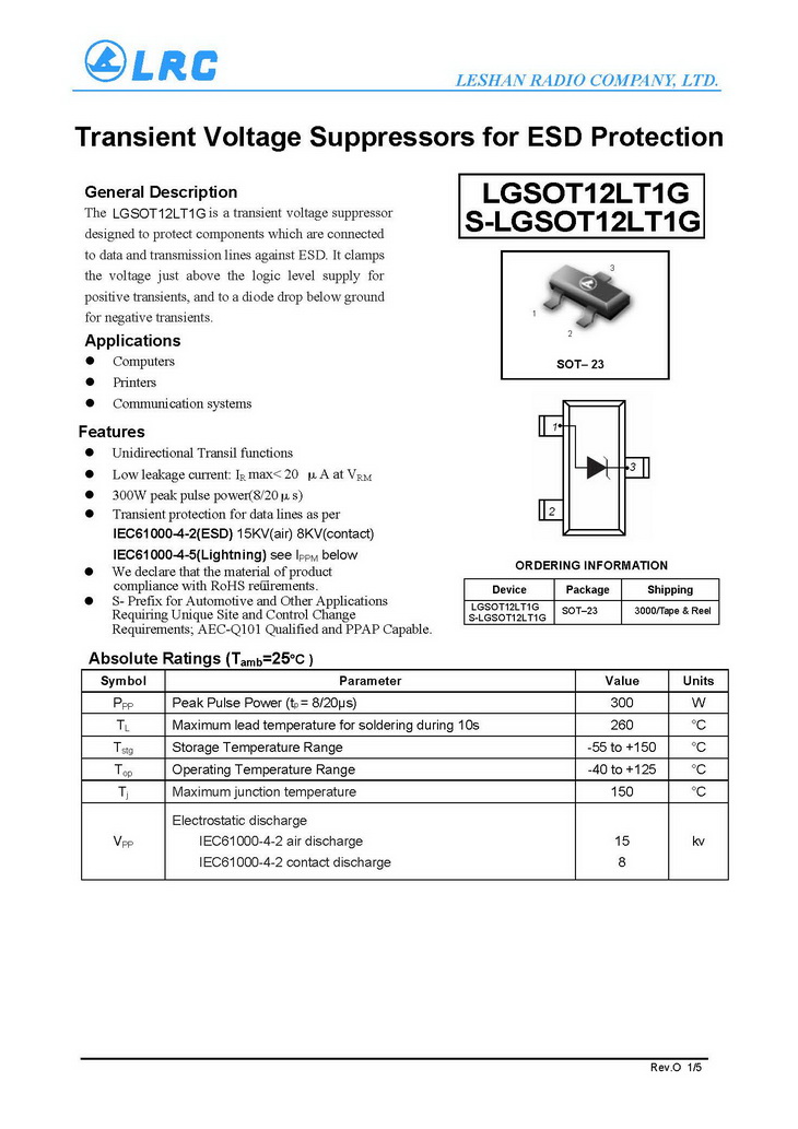 > LGSOT12LT1G VRM 12V VC 19V CJ 150pF SOT-23 LRC通用ESD保護二極管
