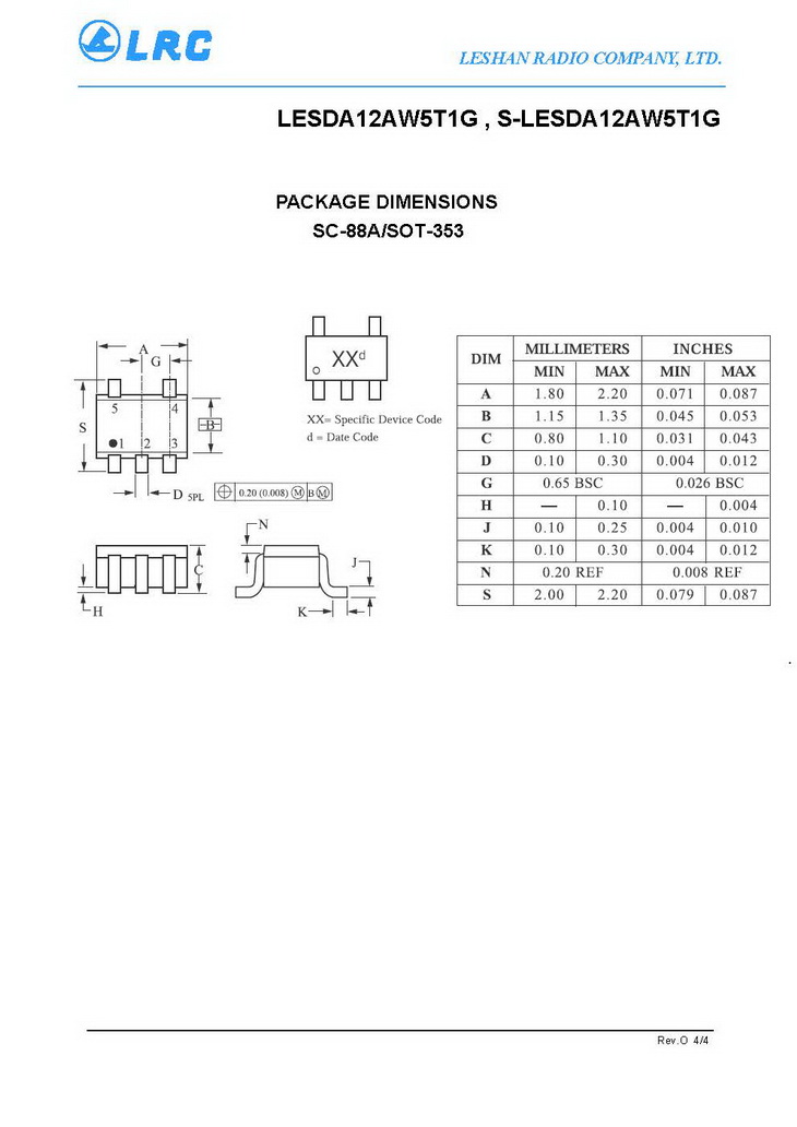 LESDA12AW5T1G VRM 12V VC 13V CJ 15pF SC-88A LRC通用ESD保護二極管