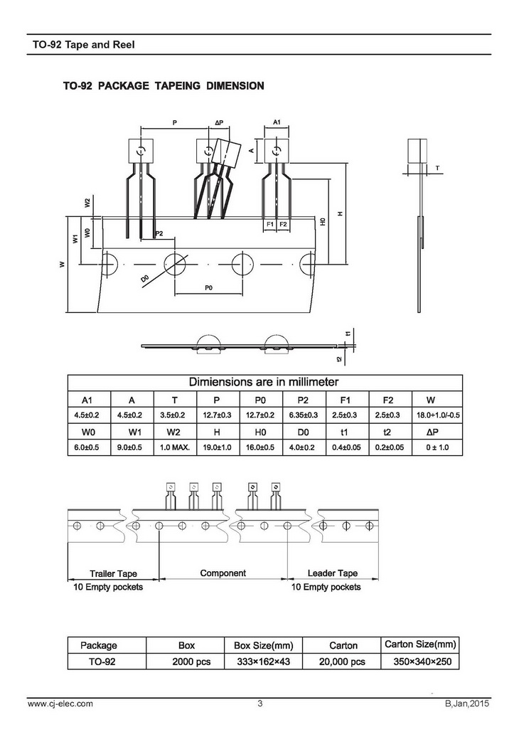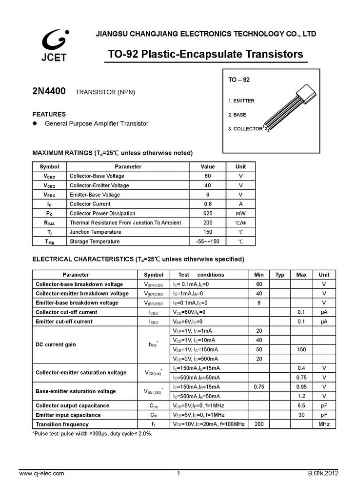 > 2N4400 NPN 625mW IC=600mA BVCBO=60V TO-92 長電 通用放大器晶體管