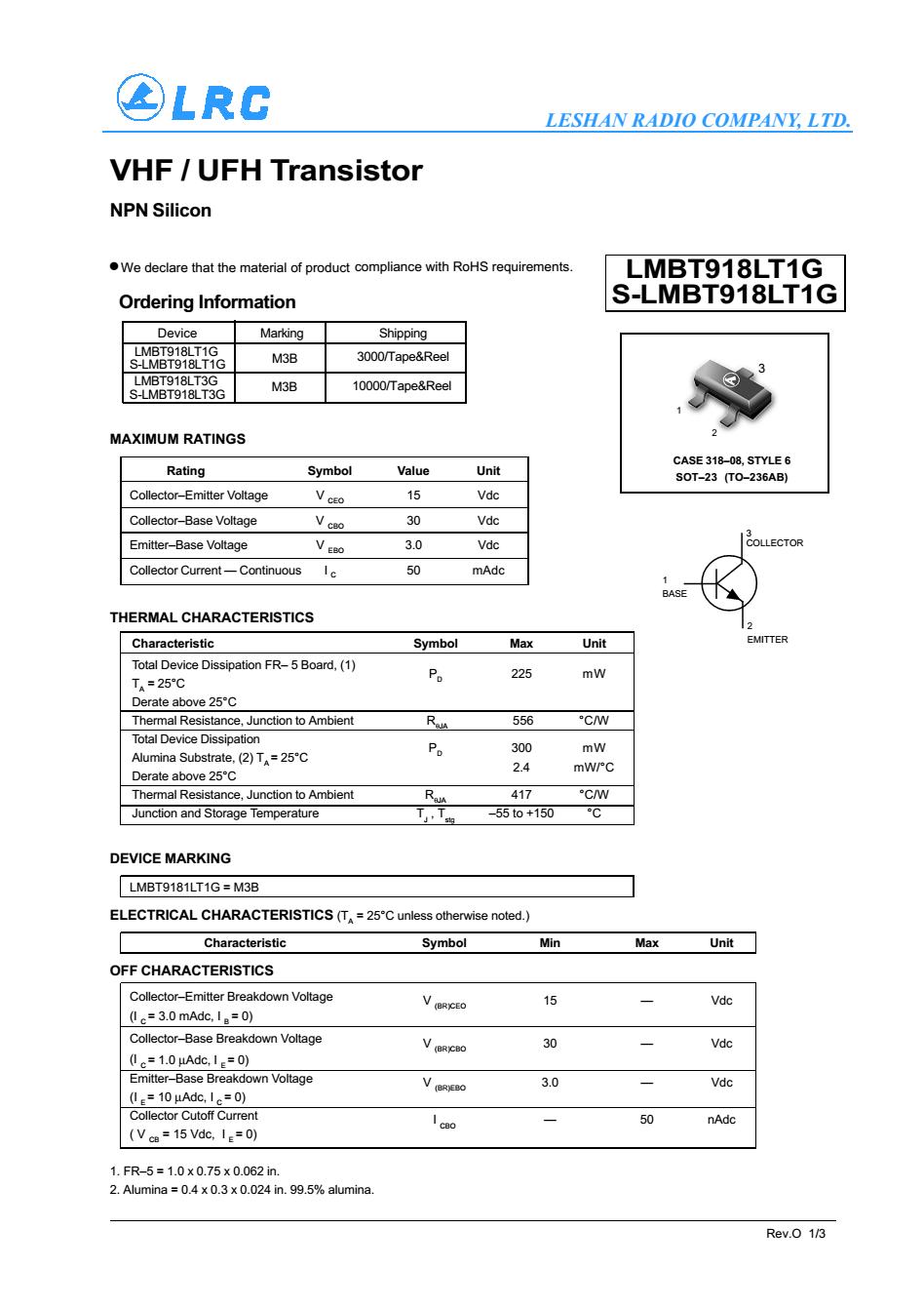 > LMBT918LT1G SOT-23 NPN LRC三極管