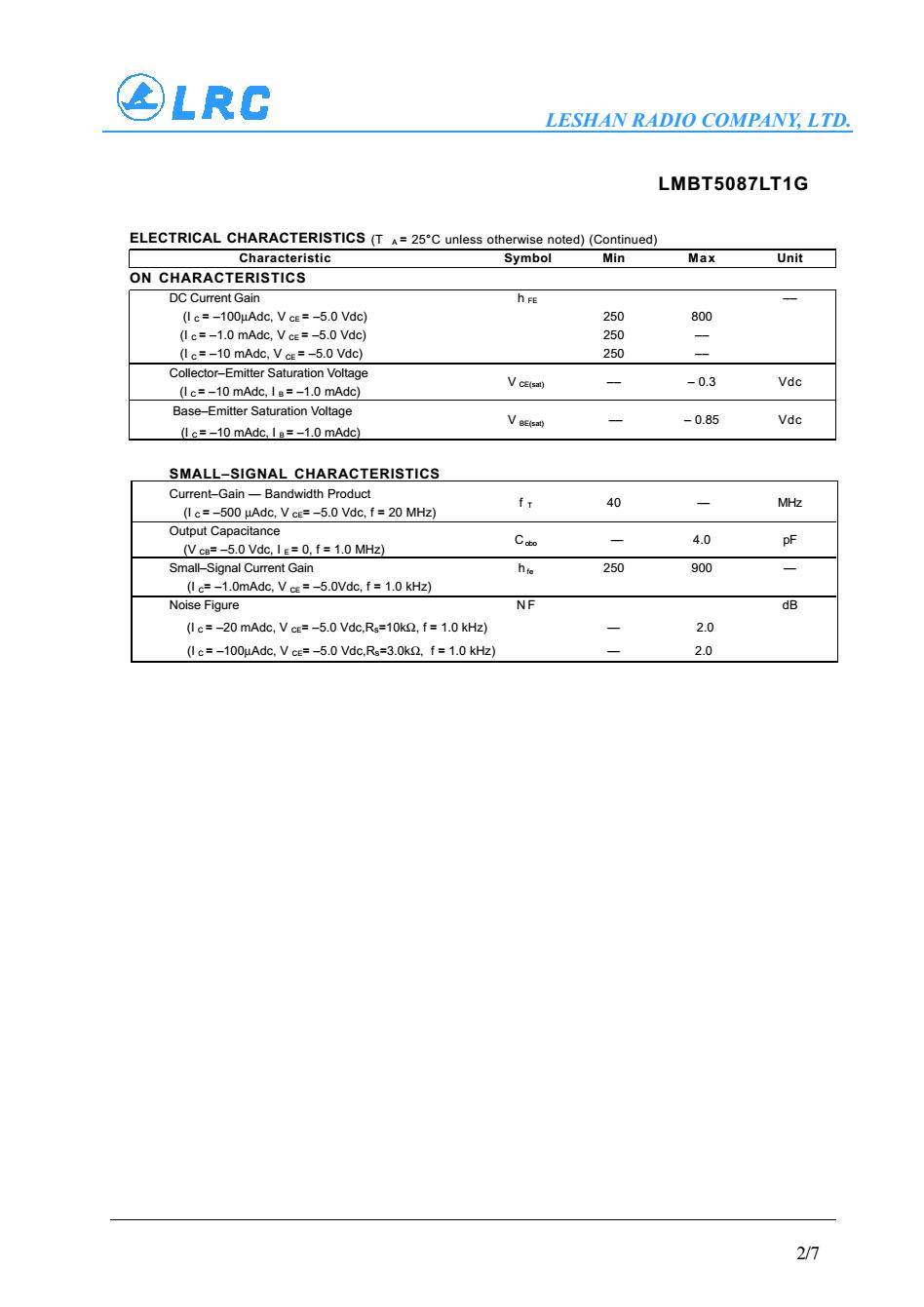 LMBT5087LT1G SOT-23 PNP LRC三級管