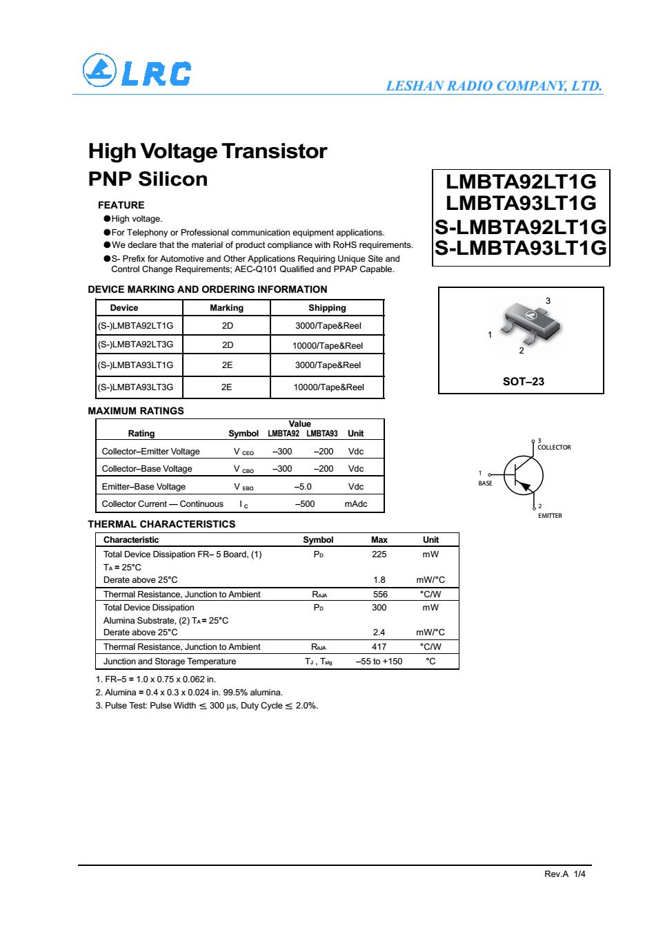 LMBTA92LT1G SOT-23 PNP LRC三極管